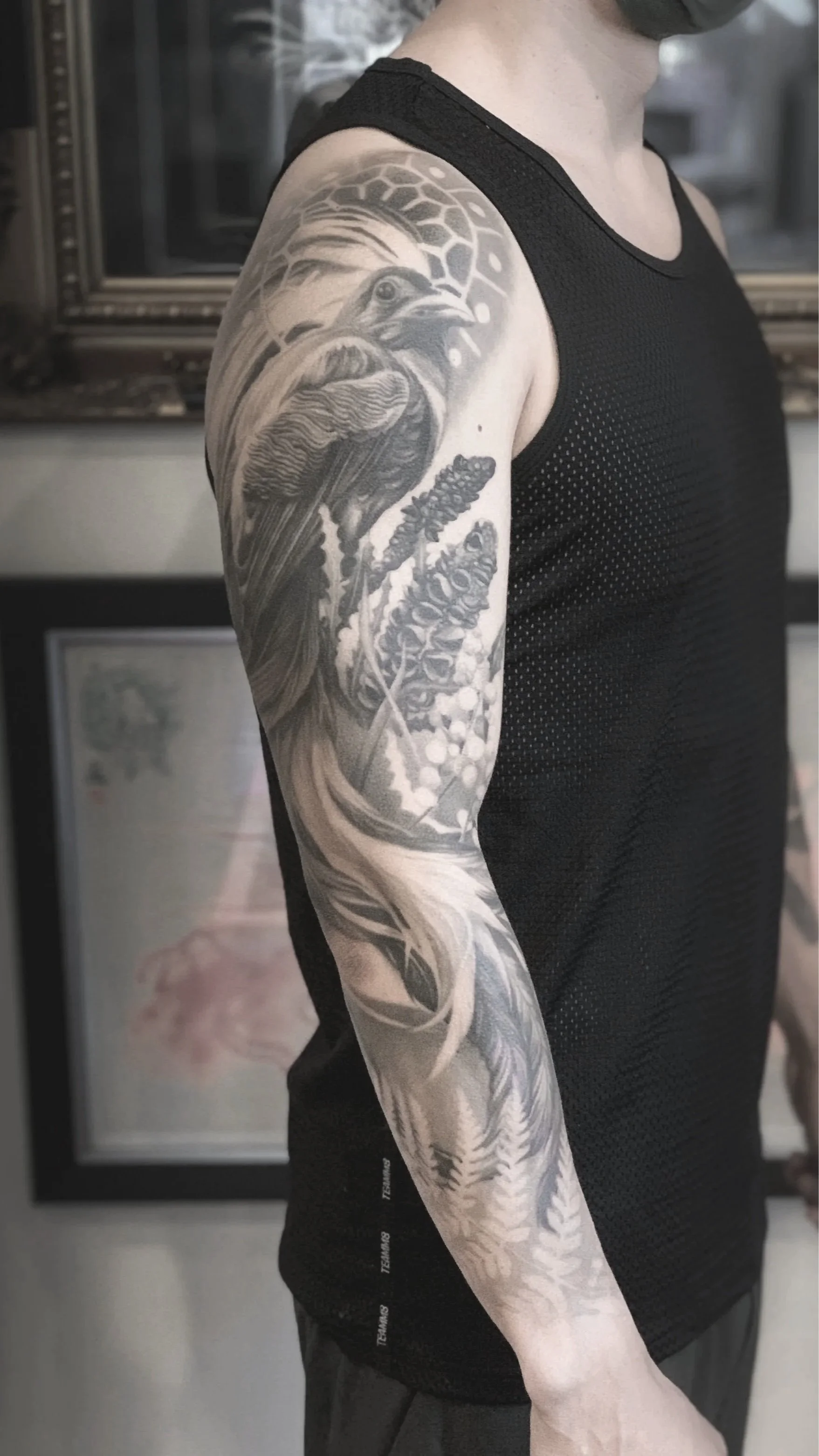 “I had always wanted a realistic trash polka style sleeve and after showing Megan what I wanted she came up with this amazing design and the rest is history. Super happy and easily my favourite tattoo, Megan is such an amazing artist and person.”